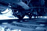 Azerbaijan. Old steam locomotive on the boulevard. View from below. Baku city