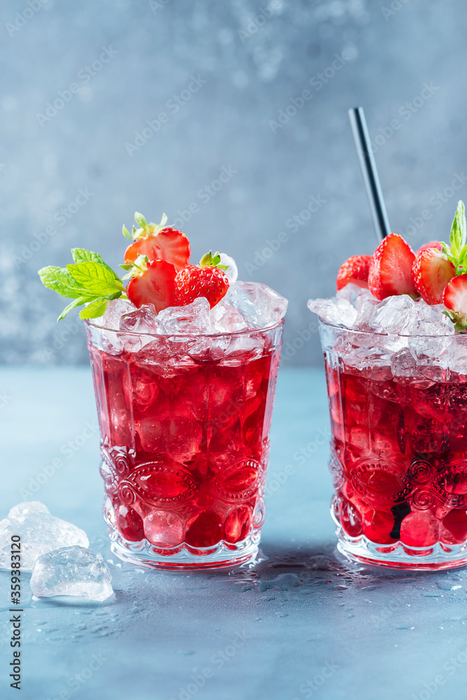 Red cocktail with ice and mint