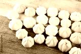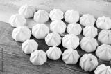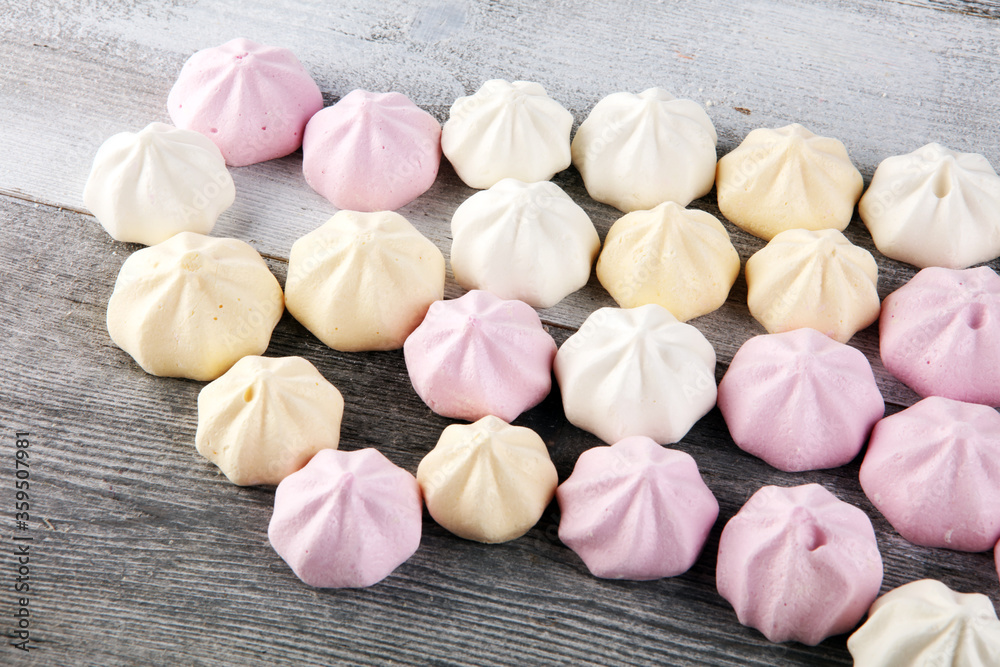 Meringue. Crispy white and pink twisted meringue. Concept love of sweet on table