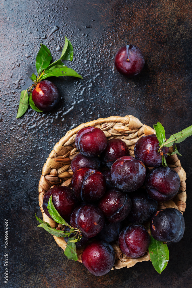 Top down view of sweet plums