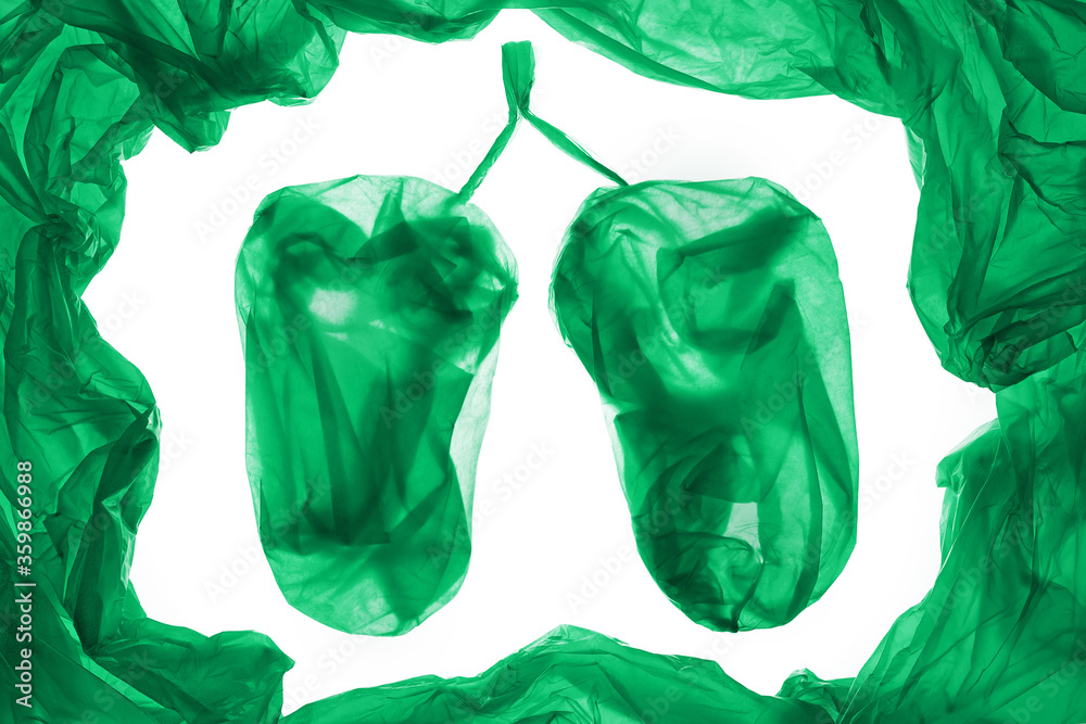 The concept of light planets and air pollution. Carbon dioxide on the background. Lung plastic bag body