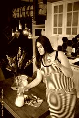young pregnant woman in her kitchen eating a muffin. Pregnant woman in the kitchen sits at a table and eats