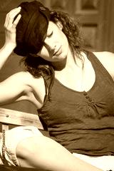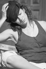 Close up of Relaxed looking female taking a sun bath on a sky resort chairlift in summerr
