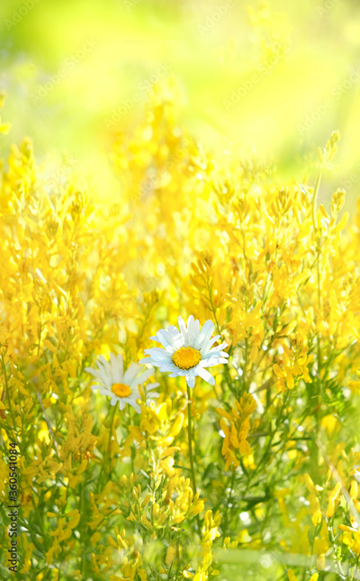 Beautiful nature background with chamomile flowers. blossom summer season. sunny meadow and daisy