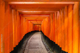 Japan. Fushimi Inari in Kyoto. Sanctuary of a thousand red gates. Orange arches on the way to the temple. Red arches at entrance to a temple in Japan. Path to the temple in Kyoto. Tourism in Japan