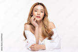 Beautiful Asian woman look at camera smile with clean and fresh skin