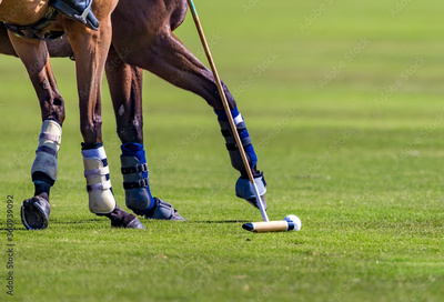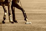 Polo ponies take riders to the ball which is about to be hit by a mallet