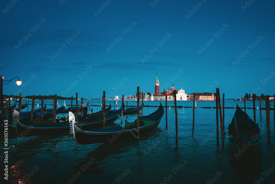 gondolal at night and San Giorgio Maggiore church, Venice, Italy