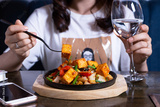 Asian food with tofu and vegetables