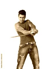 Warrior with ninja swords