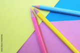 Crayons et papiers colorés pastels avec espace vide pour du texte