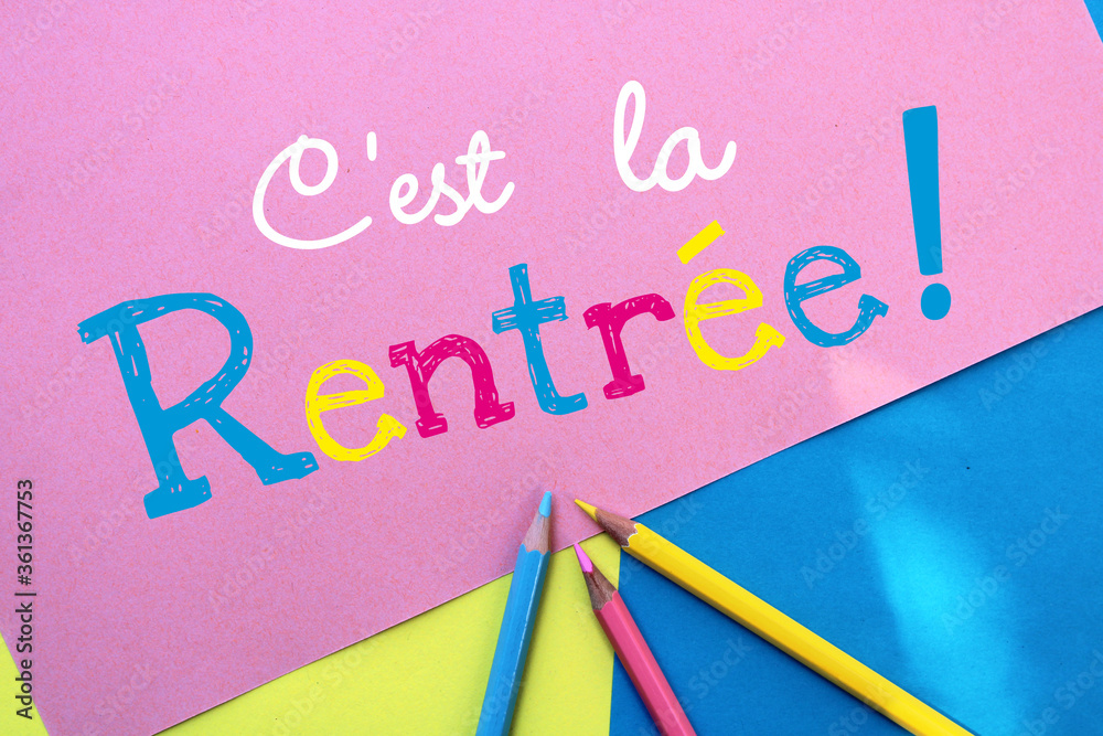 Rentrée scolaire, c'est la rentrée ! message sur papier coloré
