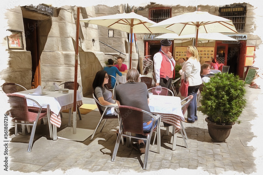 Madrid. At the Plaza Mayor. Imitation of oil painting. Illustration