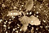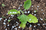 Hailstones on Eggplant after a storm. Hail storm in the vegetable garden on springtime