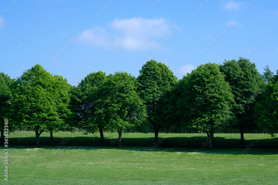 Landscape of green grass field with beautiful blue sky in hot sunny day, Beautiful view day time view at countryside in England in Summer