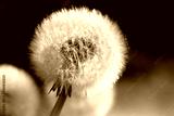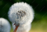 Dandelion seeds in the morning sunlight with blurry green background, Peacful natural of wild flowers