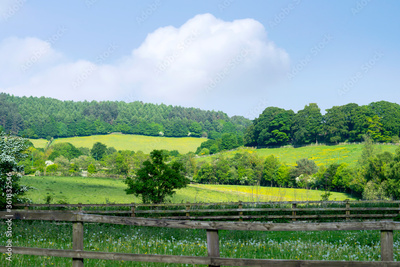 Landscape of green grass field with beautiful blue sky in hot sunny day, Beautiful view day time view at countryside in England in Summer