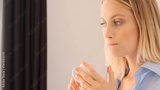 Close up beautiful girl dreaming while drinking coffee on kitchen at home