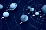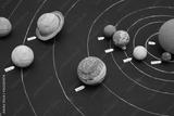 Kids presenting their science home project at school - chart showing the planets of our solar system prepared for education purpose for students.