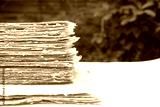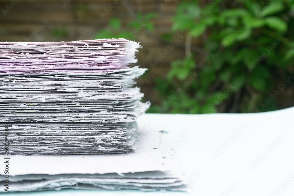 A stack of handmade paper. Waste paper recycling.