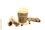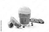 Iced coffee latte with whipped cream and biscotti cookies in glass. isolated on white background