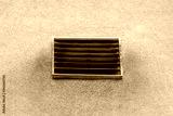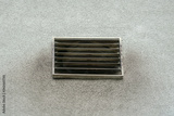 dirty ventilation grate on grey concrete wall of modern building on city street