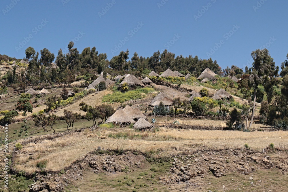 View of Gich village in Simien Mountains National park. Ethiopia. Africa.