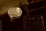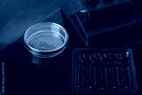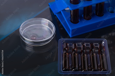 laboratory blood tests and the creation of an untested vaccine, a concept on a dark background