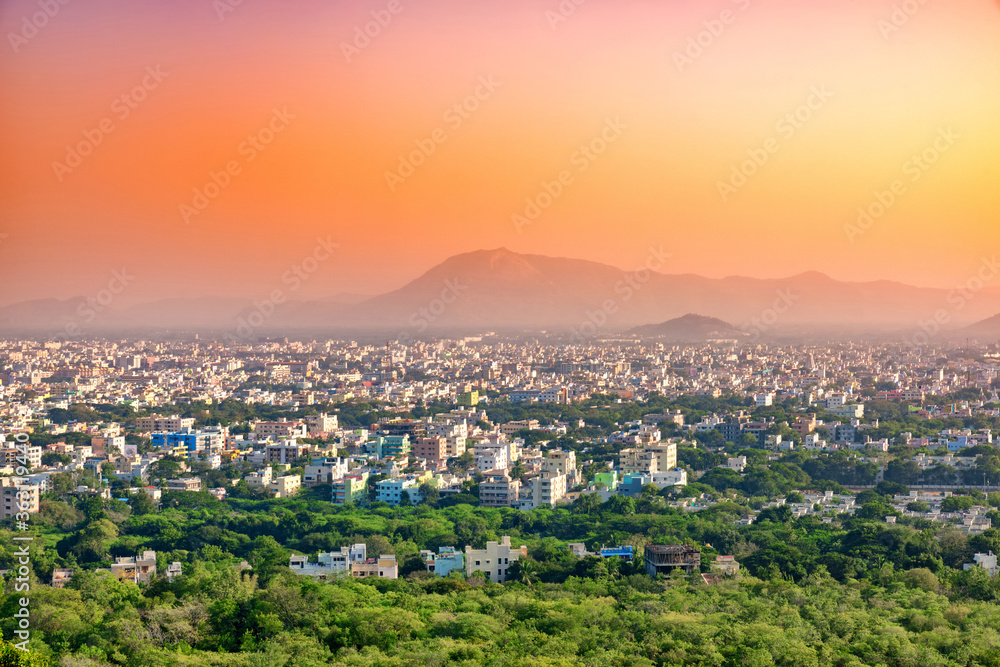 Aerial view of Tirupati city in South India, Andhra Pradesh.