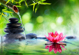 Spa Stones And Waterlily With Fountain In Zen Garden - Asian Culture