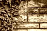 kamienny płot porośnięty bluszczem -zdjęcie nadające się na tło projektu