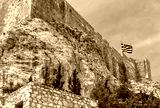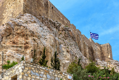 Acropolis of Athens in summer, Greece. Famous Acropolis hill is top landmark of old Athens. Landscape with medieval castle and ancient ruins