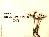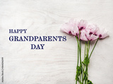 National Grandparents Day. Beautiful, bright flowers lying on a white, wooden table. View from above, close-up