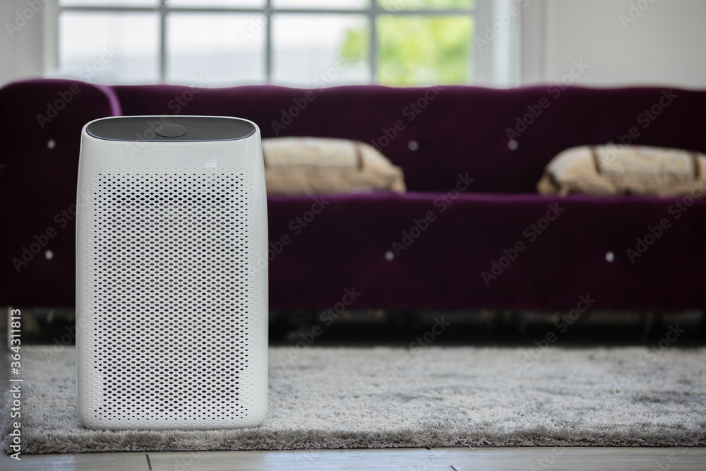 Air purifier in cozy white Living room for filter and cleaning dust PM2.5