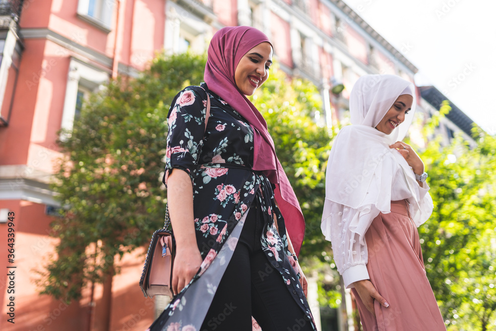 Beautiful Arab Girls Having fun Outdoors. Friendship Concept.