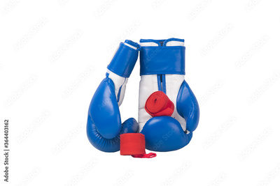 close-up, gloves for sports, Boxing and red bandages for protection, on a white background