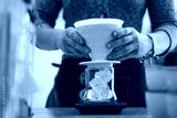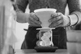 Woman barista preparing a V60 filter specialty coffee in a cafe
