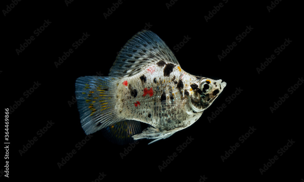 freshwater aquarium fish Balloon Molly (Poecilia velifera) on black background