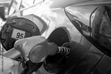 Car fueling at gas station. Refuel fill up with petrol gasoline. Petrol pump filling fuel nozzle in fuel tank of car at gas station. Petrol industry and service. Petrol price and oil crisis concept.
