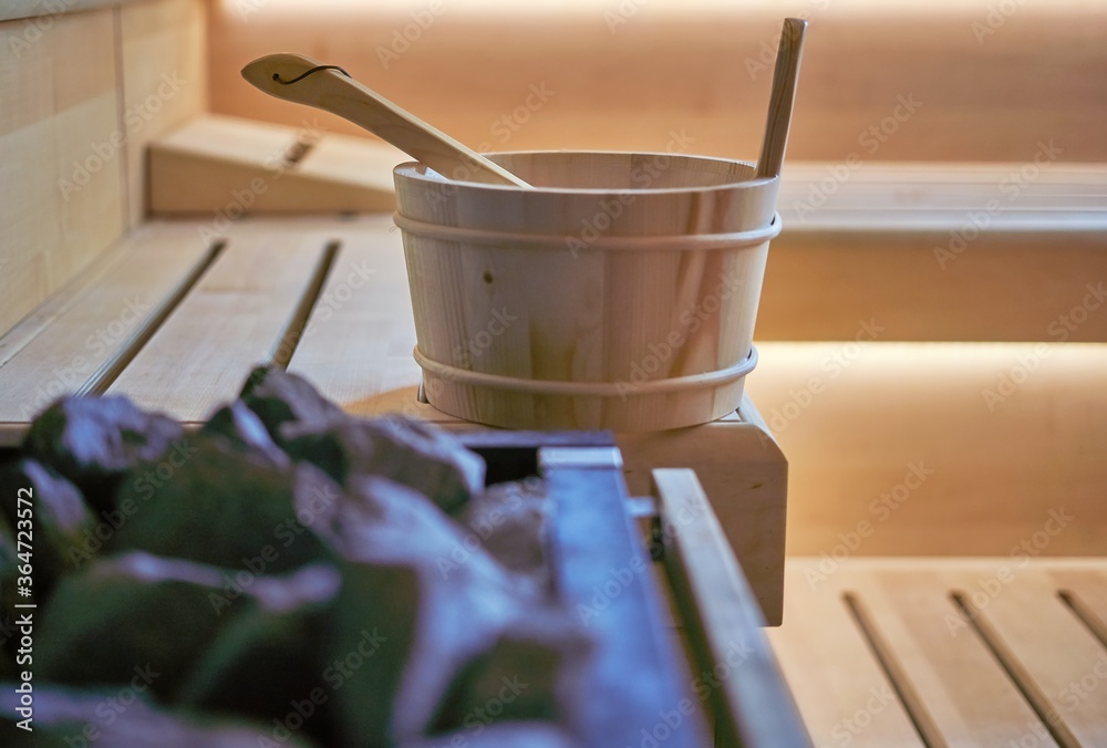 Sauna bucket in Finnish sauna.