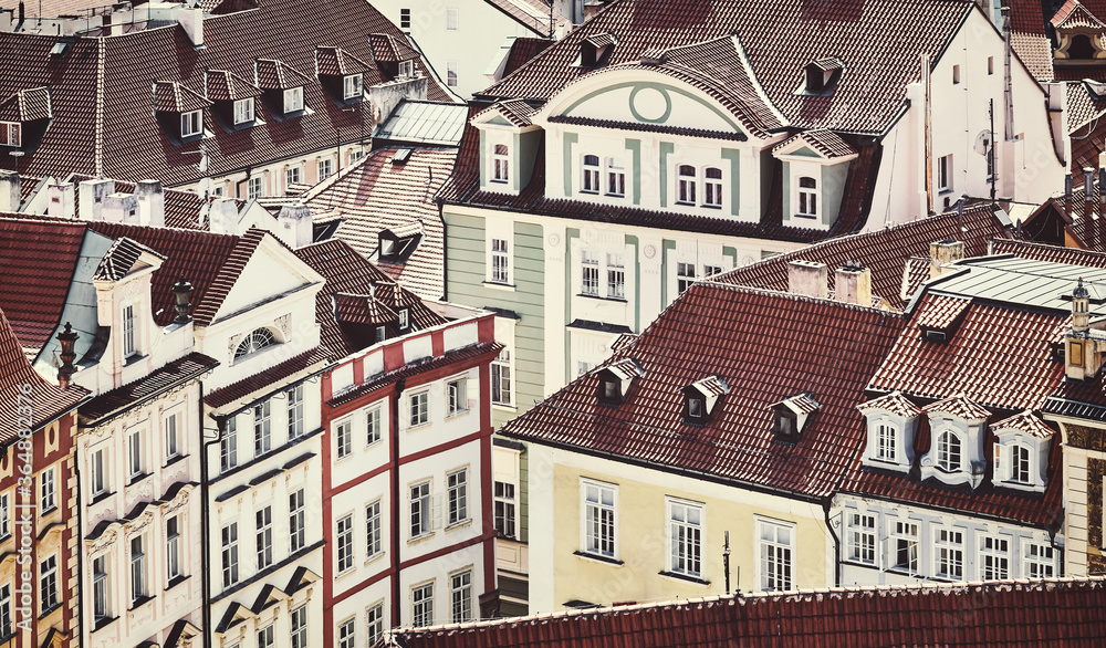 Retro toned picture of Prague Old Town architecture, Czech Republic.