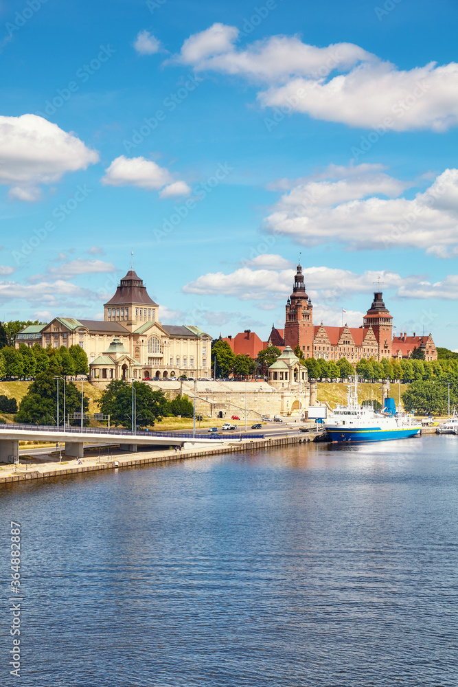 Szczecin waterfront with Chrobry Embankment, Poland.