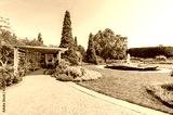 The roses garden with Rose Petal Fountain in the Chicago Botanic Garden, Glencoe, Illinois, USA