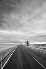 Scenic road in Badlands National Park at sunset, USA.