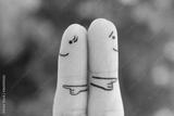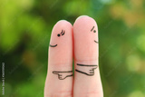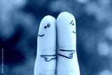 Fingers art of couple. Concept of a couple pointing in different directions.