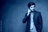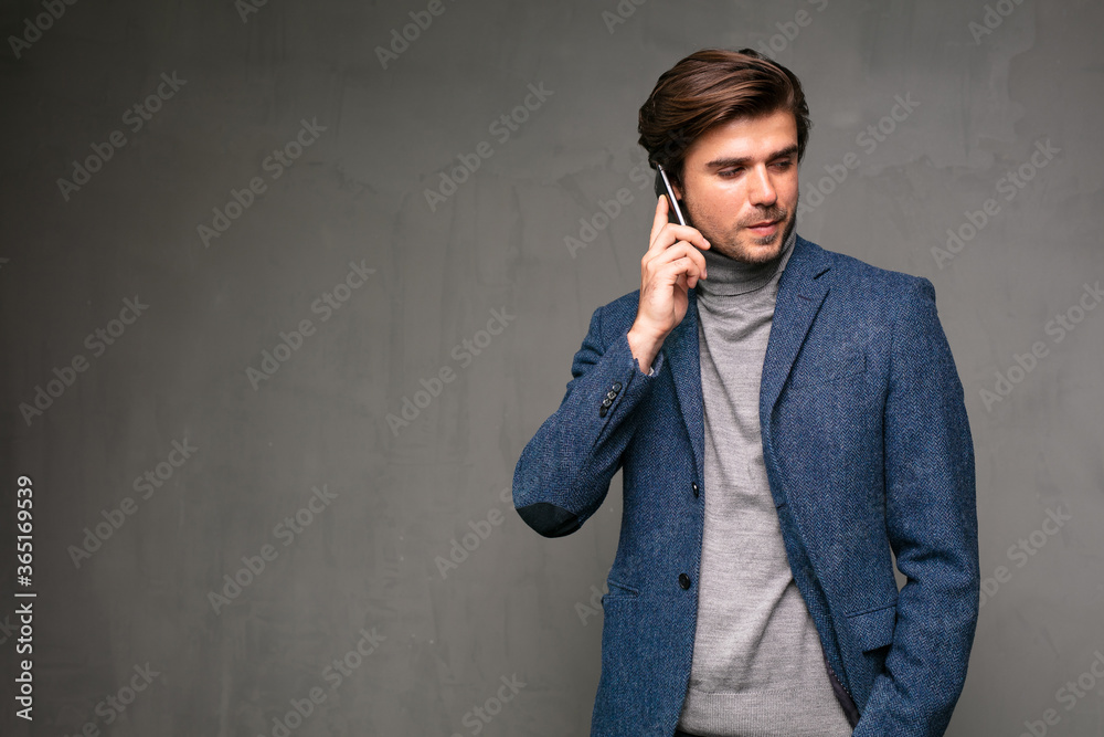 elegant stylish man on grey