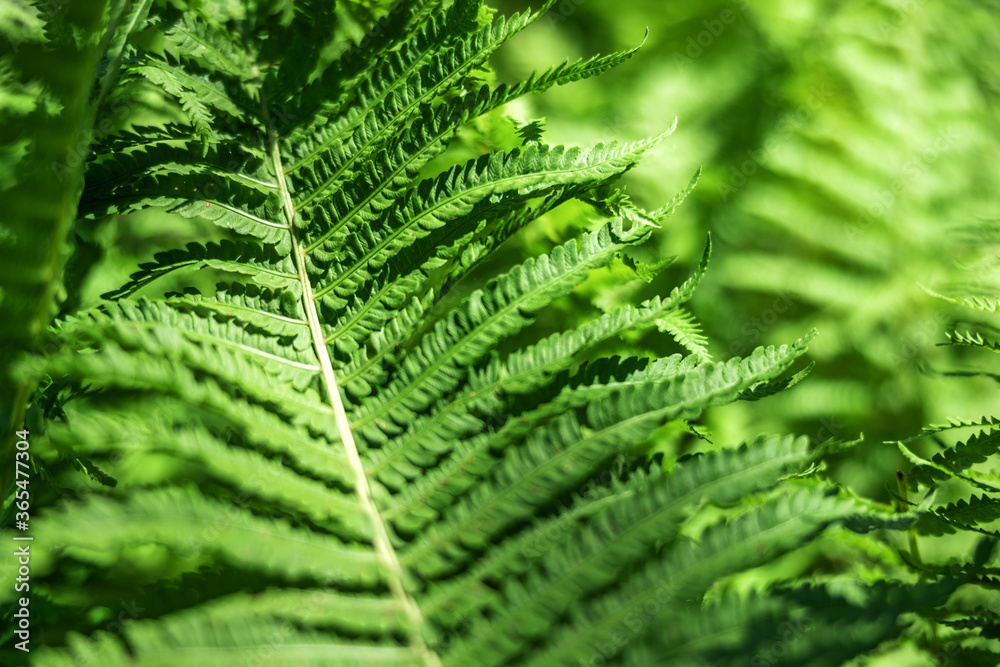 Fern in the forest as a background. Flower plants outdoors. Beautiful green color.