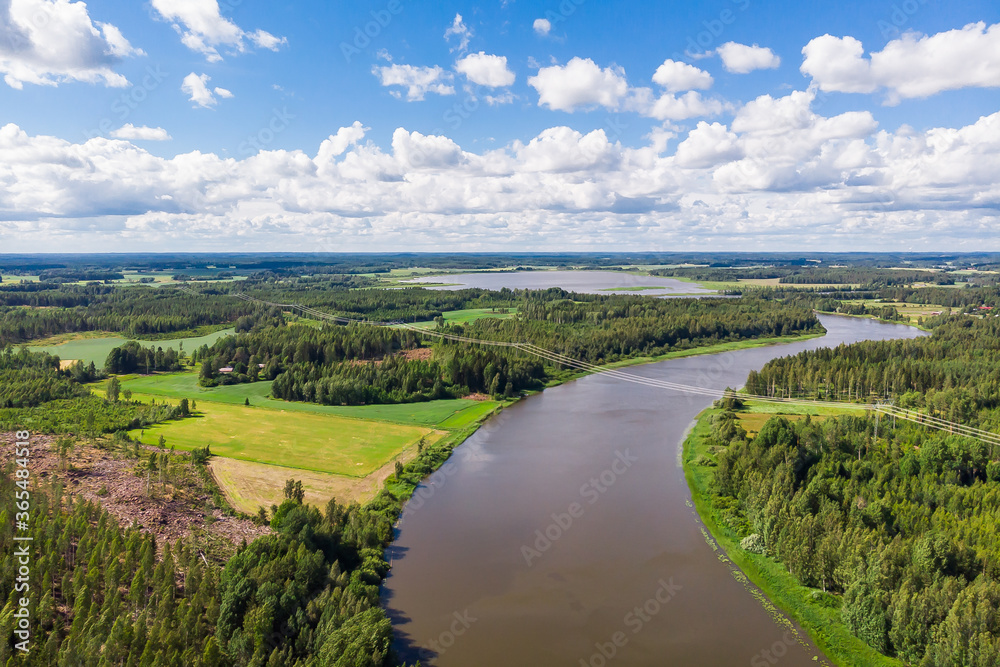 Aerial summer view of rapid Ahvionkoski at river Kymijoki, Finland.