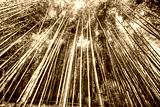 Kyoto, Japan canopy low angle wide angle view looking up of Arashiyama bamboo forest park pattern of many plants on spring day with green foliage color