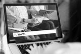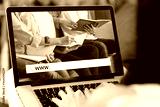 Online study class, www. and blank search bar for e learning web banner on laptop screen background